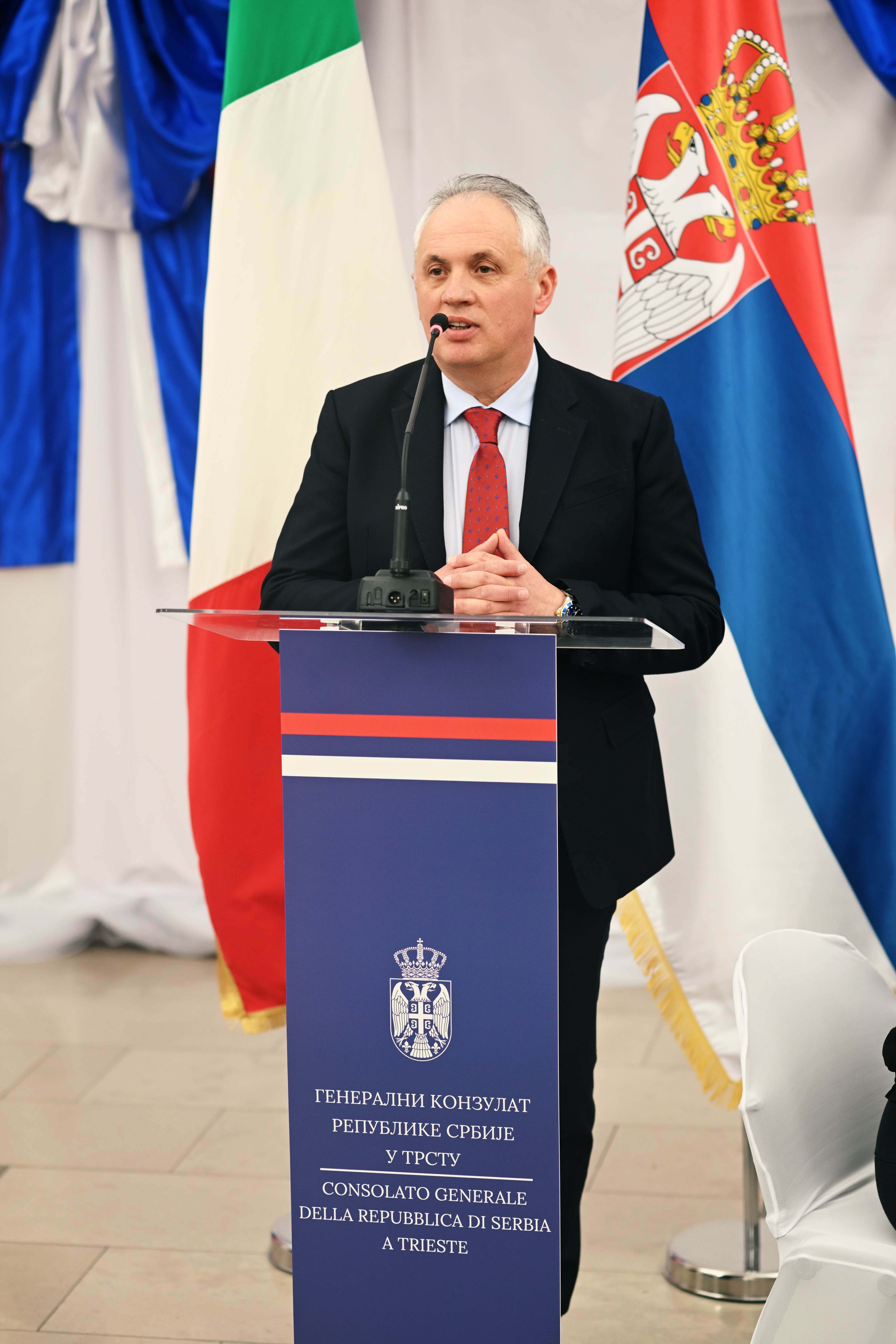 У организацији Генералног конзулата Републике Србије у Трсту је у понедељак 16. фебруара 2026. године одржан пријем поводом Сретења - Дана државности Републике Србије. Пријему су присуствовале многобројне званице, међу њима директор Управе за сарадњу са дијаспором и Србима у региону Министарства спољних послова Републике Србије господин Владимир Кокановић и председник Црквене општине Српске православне цркве у Трсту господин Златимир Селаковић. Гости Генералног конзулата били су и представници регије Фријули Венеција Ђулија, града Трста, тршћанског конзуларног кора, представници верских заједница, те представници свих српских удружења са јурисдикционог подручја Генералног конзулата.