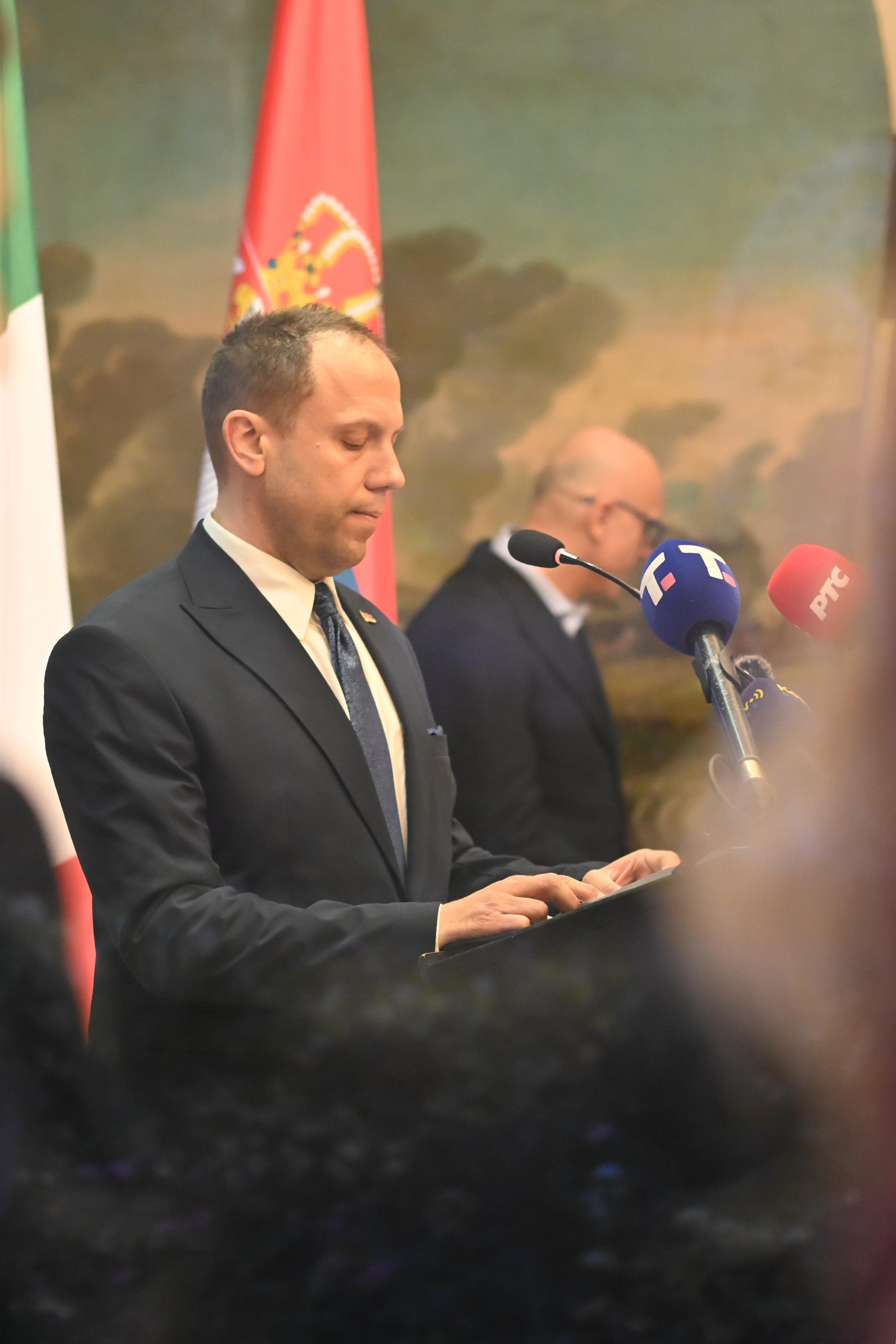Говорећи о савременој сарадњи са Италијом, Ђурић је оценио да су односи две земље изузетно добри, уз уверење да ће се наставити њихов даљи развој у свим областима. Указао је и на то да Трст има посебно место у историји српског народа као некадашњи прозор у западни свет, али да и данас представља важну капију за будуће заједничке пројекте. Посебно је истакао значај српске заједнице у Италији, која представља снажан мост између две земље и важан потенцијал за даље повезивање. „Царско величанство не треба да се ослања само на оружје, већ и на закон“, поручио је Ђурић, цитирајући латинску мисао којом је закључио обраћање.